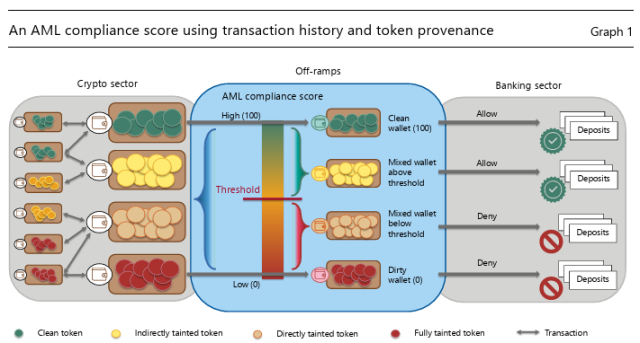 은행과 거래소에서 점수가 기준 이하이면 인출·환전을 거부하는 방식을 제시했다. 가령 강도에 따라 △강력형(허용목록 지갑만 통과, KYC 완료 필수) △약한형(불법목록 주소를 거친 적이 없으면 허용) △중간형(최근 거래 이력, 보유 기간, 의심 주소 연계 여부 등 복합 조합 고려) 세 가지로 분류했다.