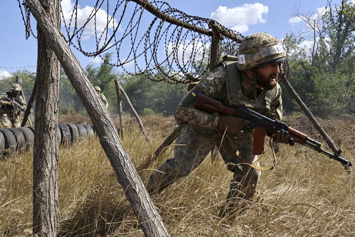 [자포리자=AP/뉴시스] 13일(현지 시간) 우크라이나 자포리자에서 65기계화여단 소속 병사들이 훈련하고 있다. 2025.08.14. |