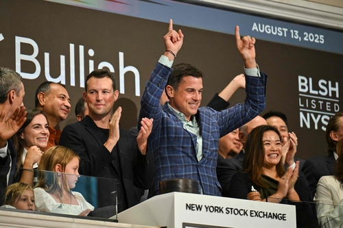 (서울=연합뉴스) 황정우 기자 = 미국 가상화폐 거래소 불리시(Bullish)가 13일(현지시간) 미국 뉴욕 증시에 상장했다.
