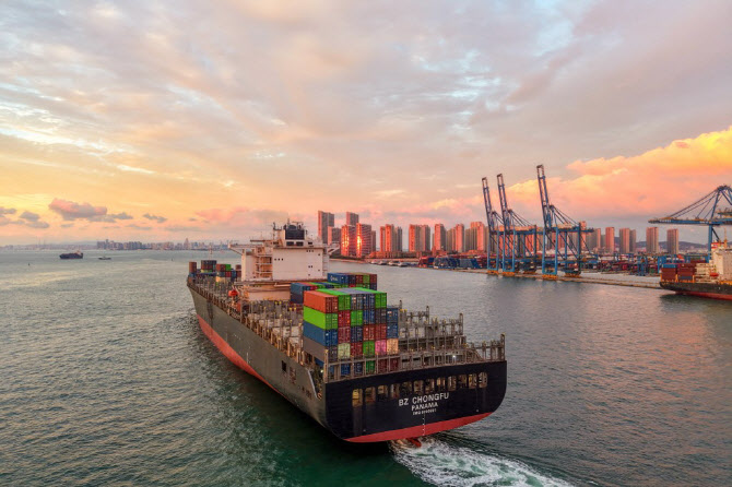 중국 동부 산둥성 칭다오항에서 컨테이너선이 항해하고 있다. (사진=AFP) |