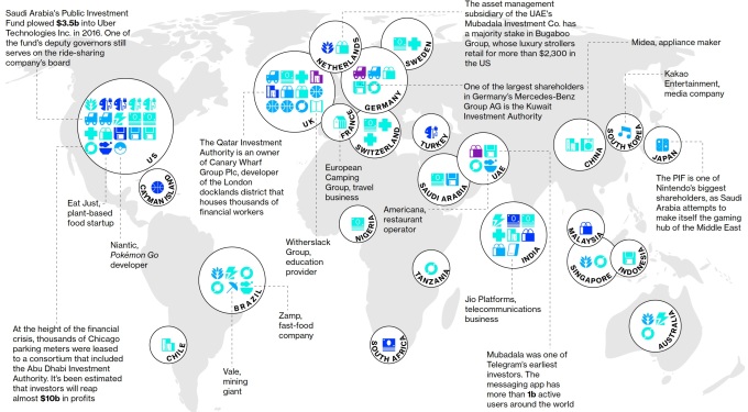 지구촌 곳곳에 파고든 중동 자본 [자료=블룸버그] |