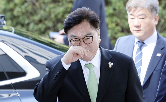 우원식 국회의장이 7일 오전 서울 서초구 서울고등검찰청에 마련된 내란 특검 사무실로 참고인 자격으로 출석하고 있다. 김성룡 기자 |