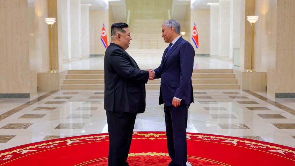 북한을 방문 중인 뱌체슬라프 볼로딘 러시아 하원(국가두마) 의장이 14일(현지시간) 김정은 북한 국무위원장과 만났다.