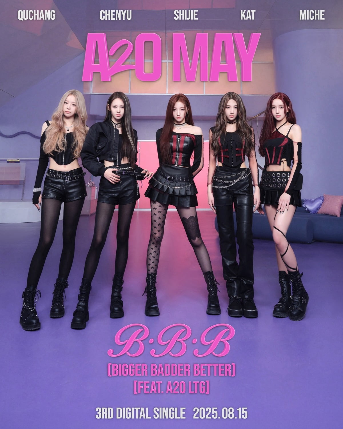 A2O MAY(CHENYU, SHIJIE, QUCHANG, MICHE, KAT)는 15일 오후 1시(한국 시간) 글로벌 음원 사이트를 통해 세 번째 싱글 'B.B.B (Bigger Badder Better) [feat. A2O LTG]'의 영어 버전 음원을 발매했다.