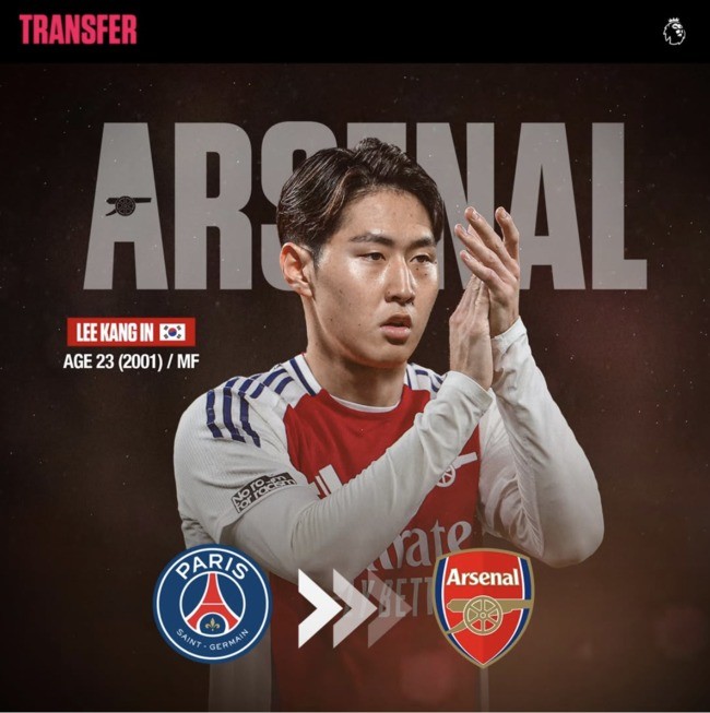 이번 이적시장에서 이강인의 이적설이 반복되고 있다. 특히 아스널은 자주 연결되고 있다. 지난 겨울 이적시장에서도 관심을 가졌다. 당시 스포츠 매체 '디 애슬레틱'은 "PSG 공격수 이강인은 아스널이 논의 중인 선수 중 한 명이다"라고 밝혔다. 그러나 이적은 이뤄지지 않았다.