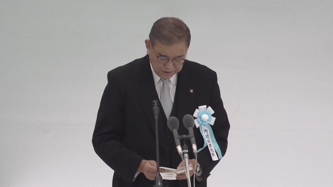 이시바 시게루 총리는 패전 80년을 맞아 오늘 도쿄 일본 무도관에서 열린 '전국 전몰자 추도식' 식사에서 "전쟁의 참화를 결코 되풀이하지 않겠다"며 "전쟁의 반성과 교훈을 이제 다시 가슴 깊이 새겨야 한다"고 말했습니다.