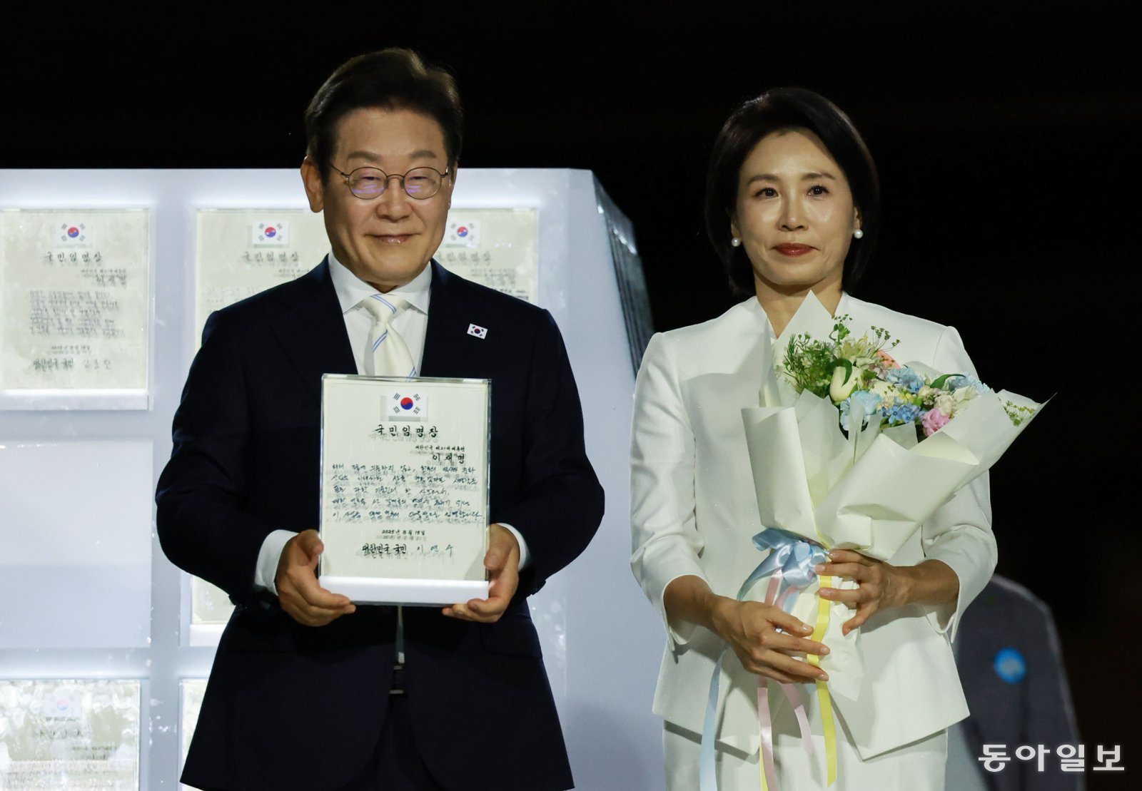 이날 비상계엄 당일 장갑차를 막아선 유충원 김숙정 씨 부부, 박항서 축구 감독, 바둑기사 이세돌 씨 등 국민 대표 80명이 원형 무대에 올라 자신이 직접 쓴 ‘빛의 임명장’을 대형 큐브에 거치했다. 이 중 광복군 독립운동가였던 목연욱 지사의 아들 목장균 광복회원, 이국종 국군대전병원장, 이연수 NC AI(인공지능) 대표, 허가영 영화감독 등 4명은 이 대통령 부부와 함께 임명장을 큐브 위에 올렸다. 대통령실은 ‘빛의 임명장’을 용산 대통령실 청사로 옮겨 전시할 계획이다.