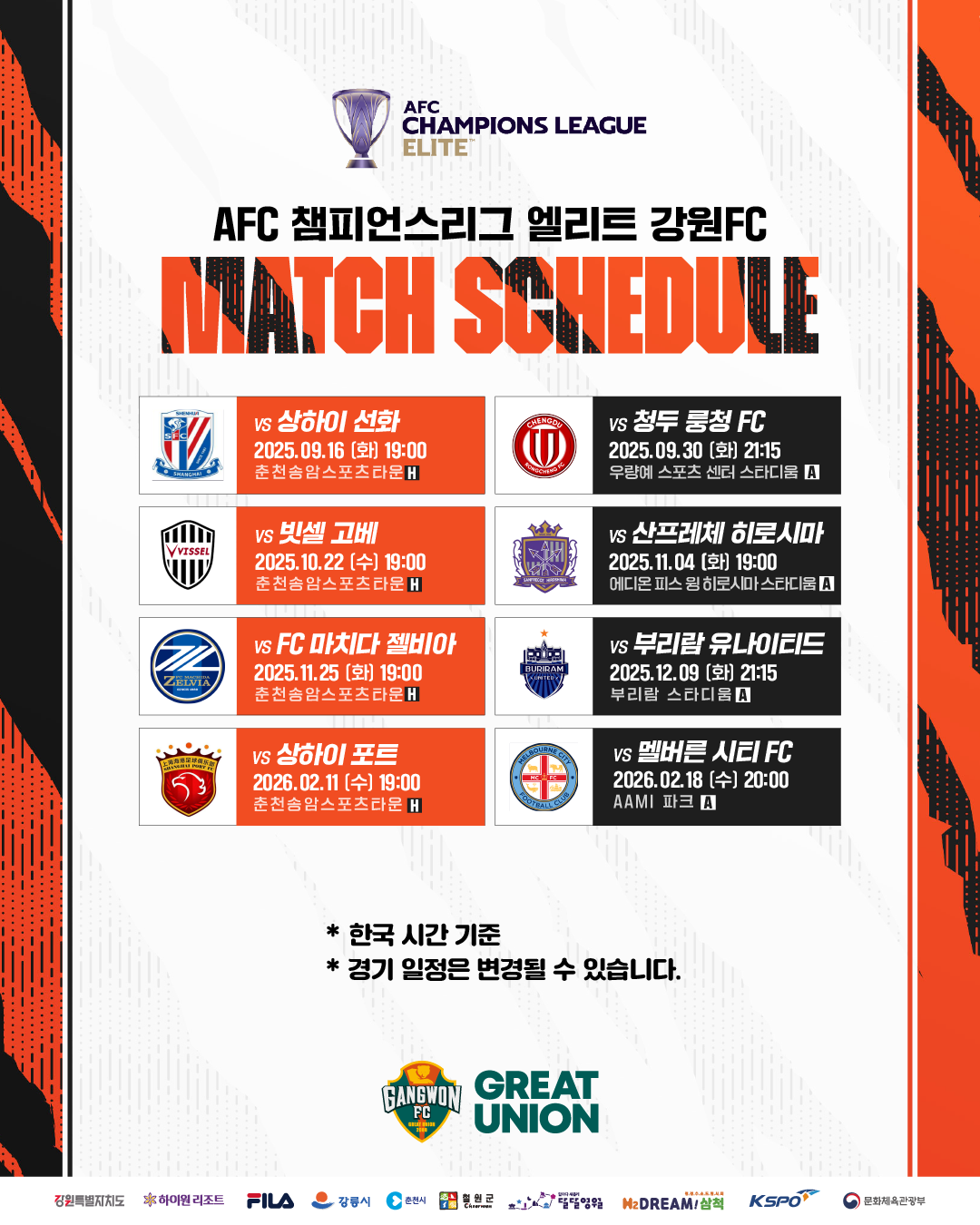 프로축구 강원FC가 구단 역사상 최초로 진출한 2025~2026 아시아챔피언스리그 엘리트(이하 ACLE)에서 상하이 선화(중국)와의 역사적인 첫 경기를 갖는다.