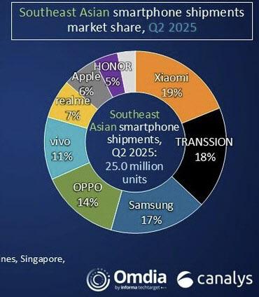 2025년 2분기 동남아시아 스마트폰 시장 점유율 (그래픽=카날리스) |