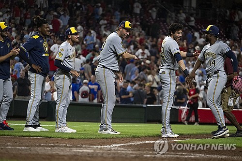 밀워키는 17일(한국시간) 미국 오하이오주 신시내티의 그레이트 아메리칸 볼파크에서 열린 2025 MLB 정규시즌 신시내티 레즈와 원정 경기에서 연장 11회까지 치러 6-5로 이겼다.