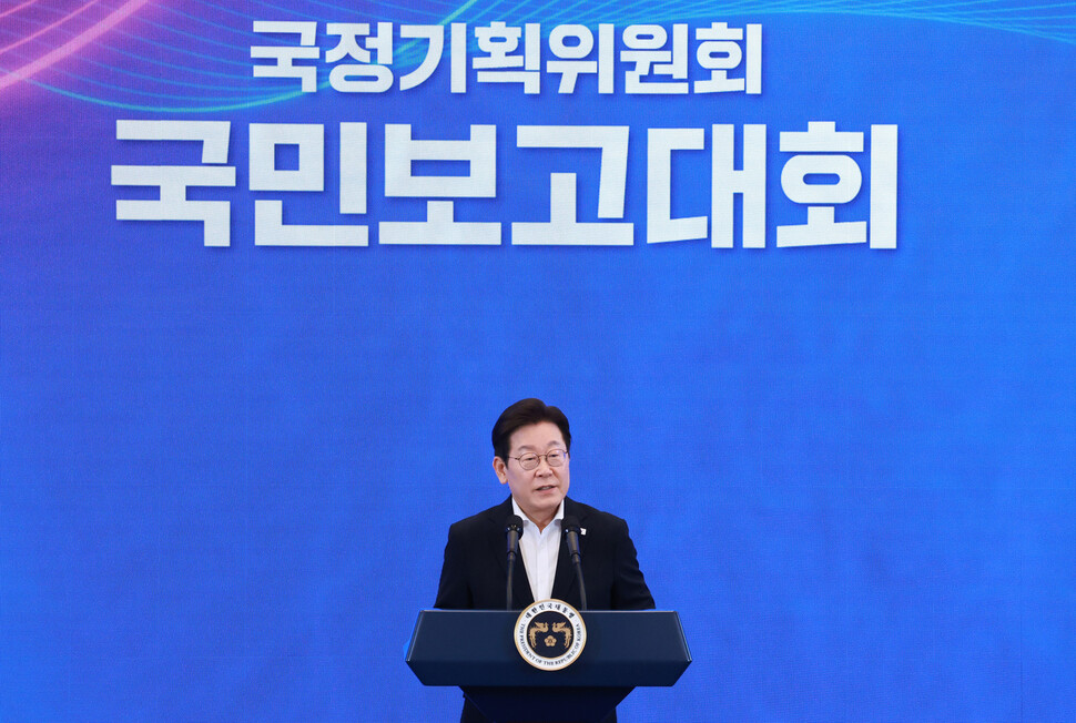 지난 13일 이재명 대통령이 청와대 영빈관에서 열린 국정기획위원회 국민보고대회에서 발언하고 있다. 연합뉴스. |