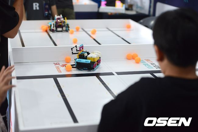간단한 로봇 제작을 통해 AI 머신러닝을 배울 수 있는 AI 로봇 프로그래밍 교육도 초중고 학생들의 관심을 끌었다. 학생들은 ‘레고 스파이크 프라임’ 교구를 활용해 블록 형식의 명령어로 코딩한 로봇을 머신러닝 기반으로 작동시켜 보며 AI 프로그래밍을 학습했다.