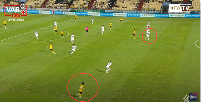 그런데 중계 화면으로만 봐도 정강민이 온사이드에 있는 게 명확했다. KFA 심판위는 이와 관련해 ‘매 경기 시작 전 경기장 내 계측(라인)의 정확도를 조정하는 VAR 컬리브레이션 확인작업을 진행한다. 해당 경기장은 사전 테스트와 다르게 경기 중 VAR 온·오프사이드 라인을 확인하는 과정에서 (판독 화면에 오프사이드로 보여지는) 기술적 문제가 발생했다’고 해명했다. 또 ‘광양전용구장 오프사이드 그래픽 구현이 가능한 5대 카메라 중 해당 장면에서는 1대 만이 오프사이드 판독이 가능한 앵글이었다’고 덧붙였다.