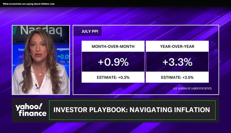 예상치를 뛰어넘은 미국 7월 생산자물가지수(PPI).미국 경제 전문 매체 야후파이낸스 캡처 |