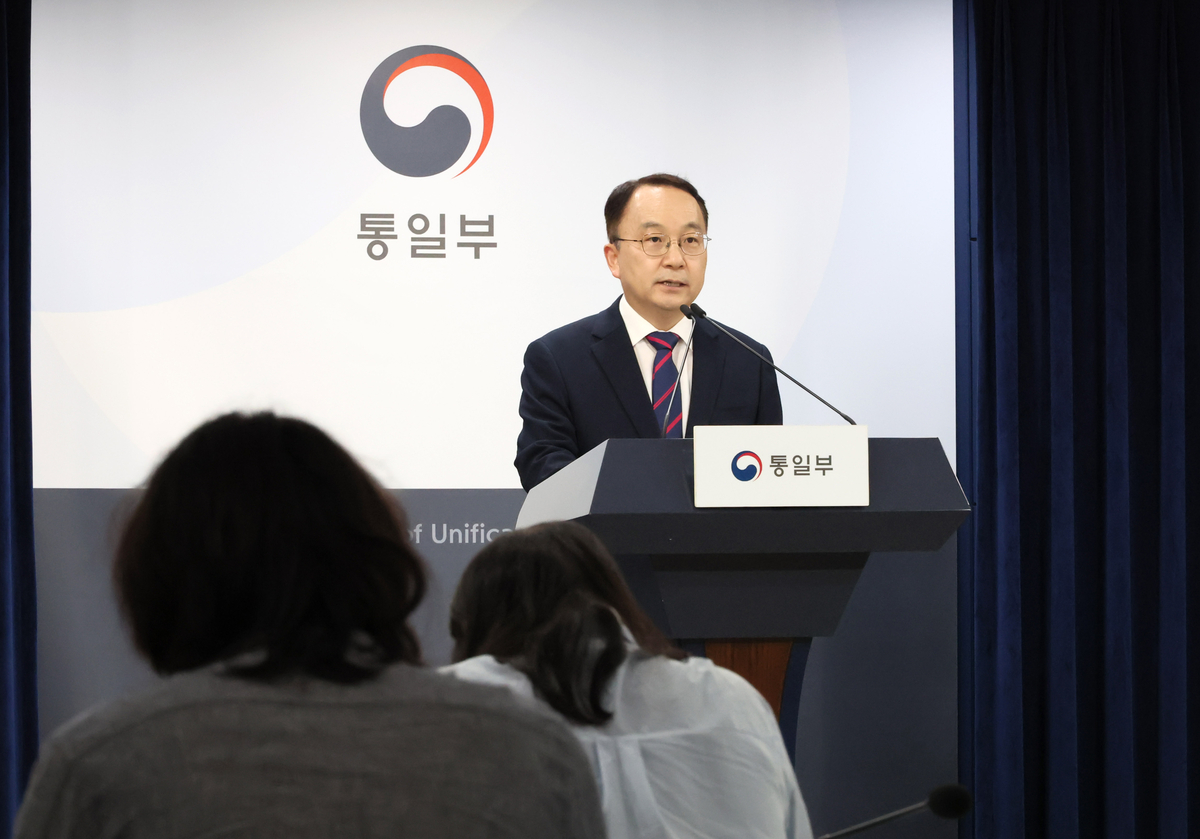 구병삼 통일부 대변인이 18일 서울 종로구 정부서울청사에서 정례브리핑을 하고 있다. 연합뉴스 |