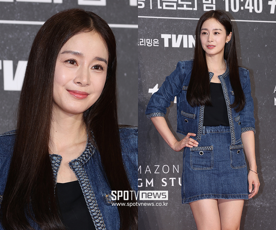 이날 행사에 참석한 배우 김태희는 40대 나이가 믿기지 않는 동안 미모를 뽐냈고, 청청패션도 우아하게 소화하며 취재진의 시선을 사로잡았다.