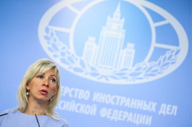 마리야 자하로바 러시아 외무부 대변인이 2018년 모스크바의 외무부 청사에서 정책 관련 기자회견을 진행하고 있다. 모스크바=타스 연합뉴스 |