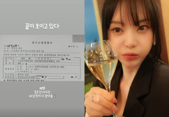 공개된 사진은 경기고양경찰서로부터 받은 수사결과 통지서다. 통지서에 따르면 서유리가 고소한 악플러들은 스토킹처벌법위반, 정통망법위반(명예훼손), 모욕 혐의 등으로 의정부지방검찰청에 송치됐다.