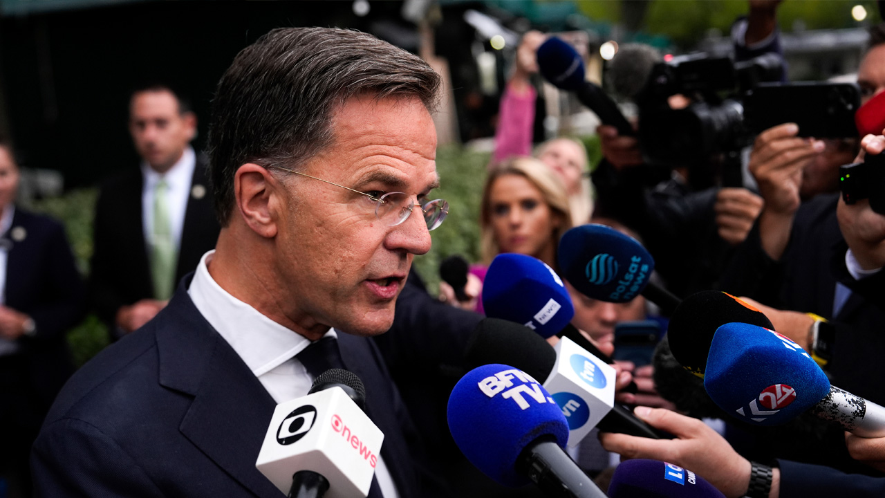 ▲ 18일 미국 워싱턴DC 소재 백악관에서 마르크 뤼터 나토 사무총장이 TV 인터뷰를 한 후 기자들에게 얘기하고 있다.