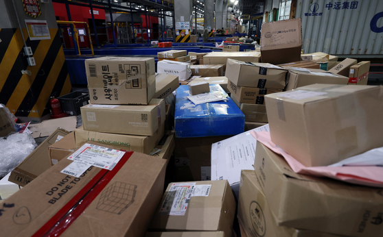 '택배 쉬는 날' 마지막 날인 17일 서울 한 물류센터에 배송될 택배 물품이 쌓여 있다. 연합뉴스 |