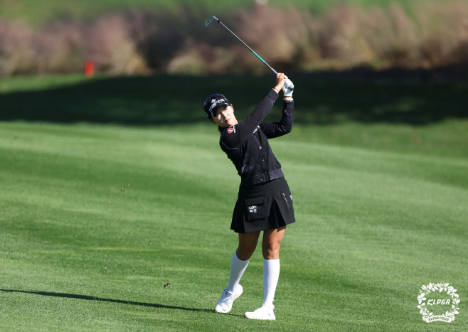 박현경이 아이언 샷을 때리고 있다. /KLPGA |