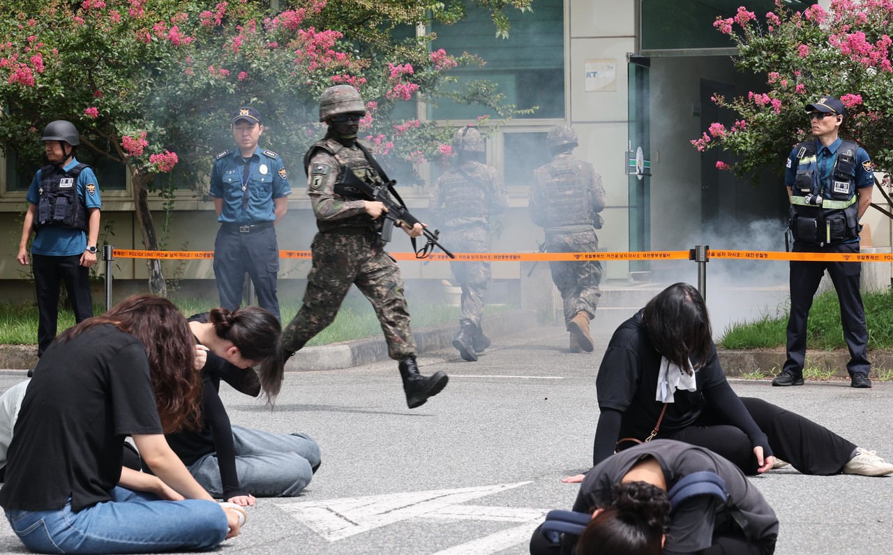 이번 훈련은 드론 폭발물 공격으로 화재가 발생하고 다수의 부상자가 발생한 상황을 가정해, 민·관·군·경·소방이 합동으로 인명 구조, 화재 진압, 테러범 검거, 현장 수습·복구 절차를 단계별로 수행하는 방식으로 이뤄졌다.