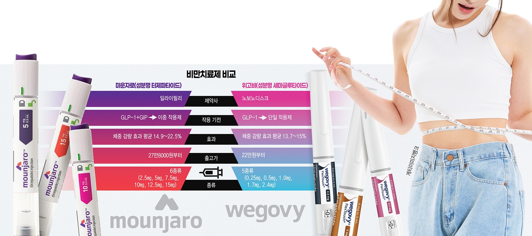 마운자로가 국내 출시되면서 시장 판도가 바뀔지 관심이 쏠린다. 현재 비만치료제는 모두 비급여다. 환자가 월 수십만 원의 비용을 부담해야 한다. 위고비는 지난해 10월부터 출고가 월 37만원대를 유지했으나, 마운자로가 출고가를 28만원대로 책정한 것이 알려지면서 가격을 22만원대로 낮췄다.