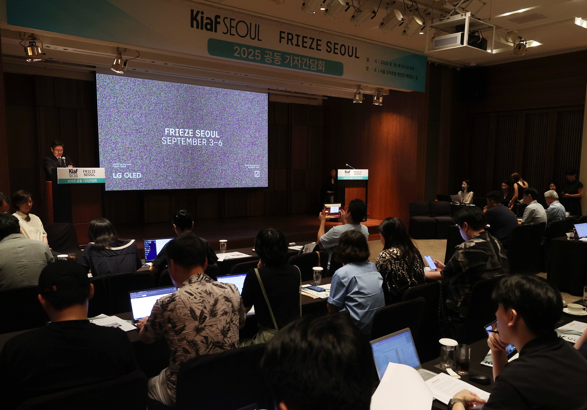 프리즈와 화랑협회는 19일 서울 중구 신라호텔에서 공동 기자간담회를 열고 프리즈·키아프 서울에서 선보이는 주요 갤러리와 작품, 행사를 소개했다. 세계 3대 아트페어 중 하나로 영국 런던에서 시작된 프리즈는 미국 로스앤젤레스, 뉴욕에 이어 2022년부터는 서울에서도 열리고 있다. 키아프는 올해로 24번째를 맞는데, 2022년부터는 프리즈 서울과의 시너지 효과를 노려 동시에 열리고 있다. 올해 프리즈 서울은 다음달 3~6일, 키아프 서울은 다음달 3~7일 서울 강남구 코엑스에서 열린다.