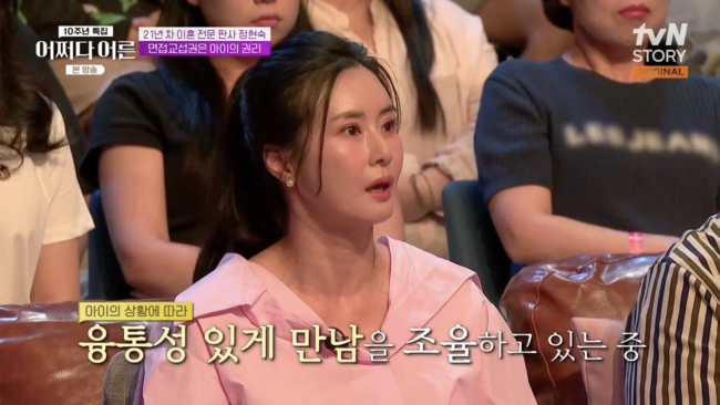 이날 정현숙 판사는 이혼 재판과 관련해 이야기를 나누다가 ‘면접교섭권’에 대해 설명했다. 그는 “면접교섭권은 부부가 이혼했을 때, 비양육자가 자녀를 정기적으로 만날 수 있는 권리다. 이건 부모의 권리일 뿐만 아니라 자녀의 권리기도 하다”고 말했다.