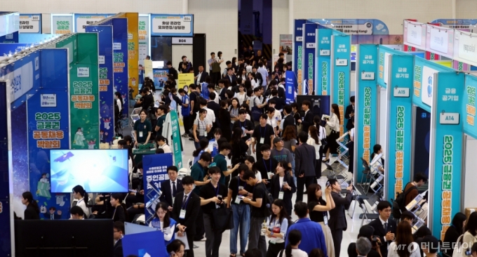 [서울=뉴시스] 박주성 기자 = 20일 서울 동대문디자인플라자(DDP)에서 열린 2025 금융권 공동채용 박람회가 구직자들로 붐비고 있다. 2025.08.20. park7691@newsis.com /사진= |