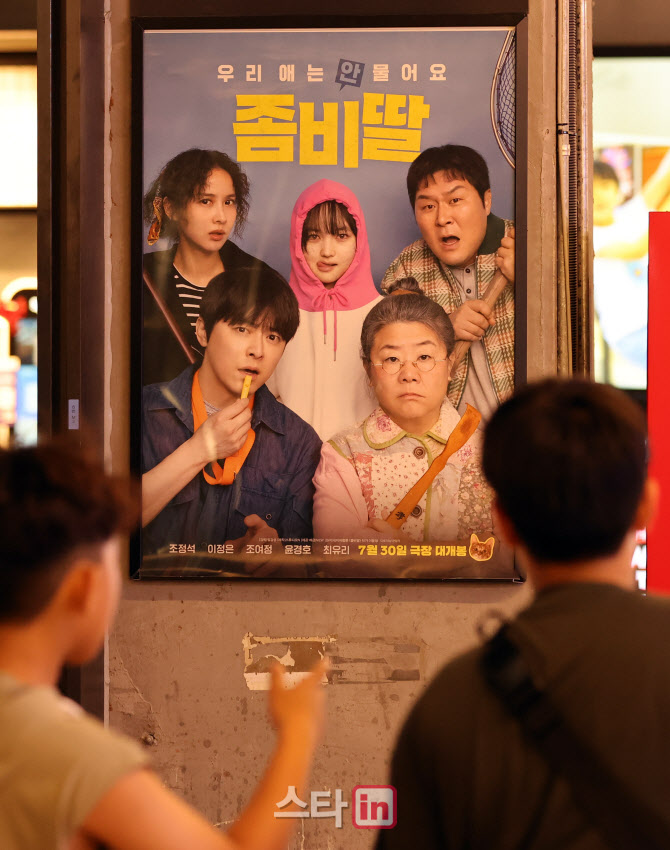서울시내의 한 영화관을 찾은 시민들이 ‘좀비딸’ 포스터 앞을 지나고 있다.(사진=이데일리DB) |