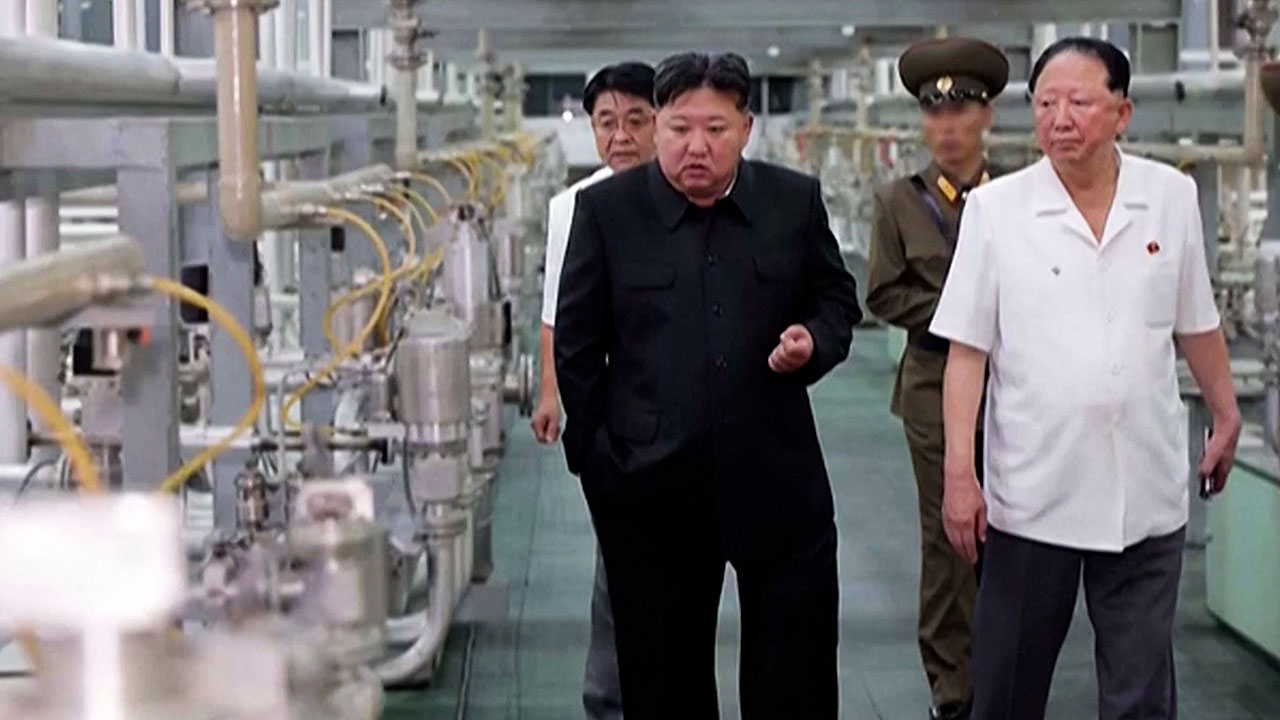 ▲ 김정은 북한 국무위원장이 핵물질 생산기지와 핵무기연구소를 현지지도했다고 조선중앙통신이 29일 보도했다.