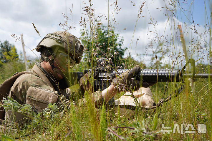 [호벨테(덴마크)=AP/뉴시스]덴마크 코펜하겐에서 북쪽으로 25㎞ 떨어진 호벨테의 덴마크군 훈련장에서 11일 한 젊은 여성 훈련병이 소총을 겨누고 있다. 2025.06.30. |