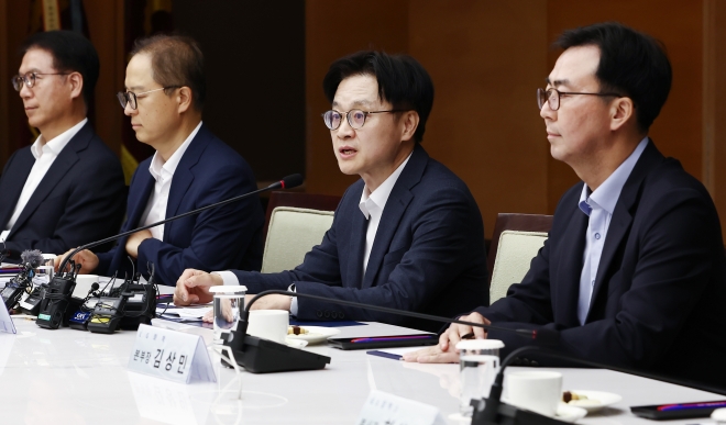 석유화학업계 자율협약식서 모두 발언하는 김정관 장관 - 김정관(왼쪽 세 번째) 산업통상자원부 장관이 20일 오후 서울 중구 대한상공회의소에서 열린 석유화학업계 사업재편 자율협약식에서 모두 발언을 하고 있다. 뉴스1 |