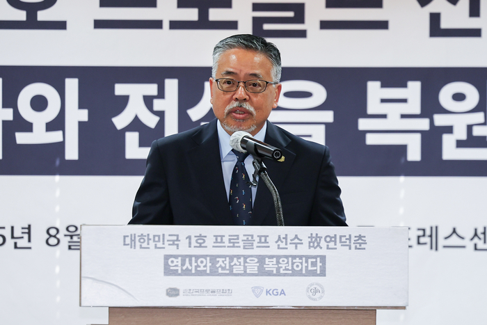김원섭 한국프로골프협회(KPGA) 회장이 기념사하고 있다. 사진 | 연합뉴스 |
