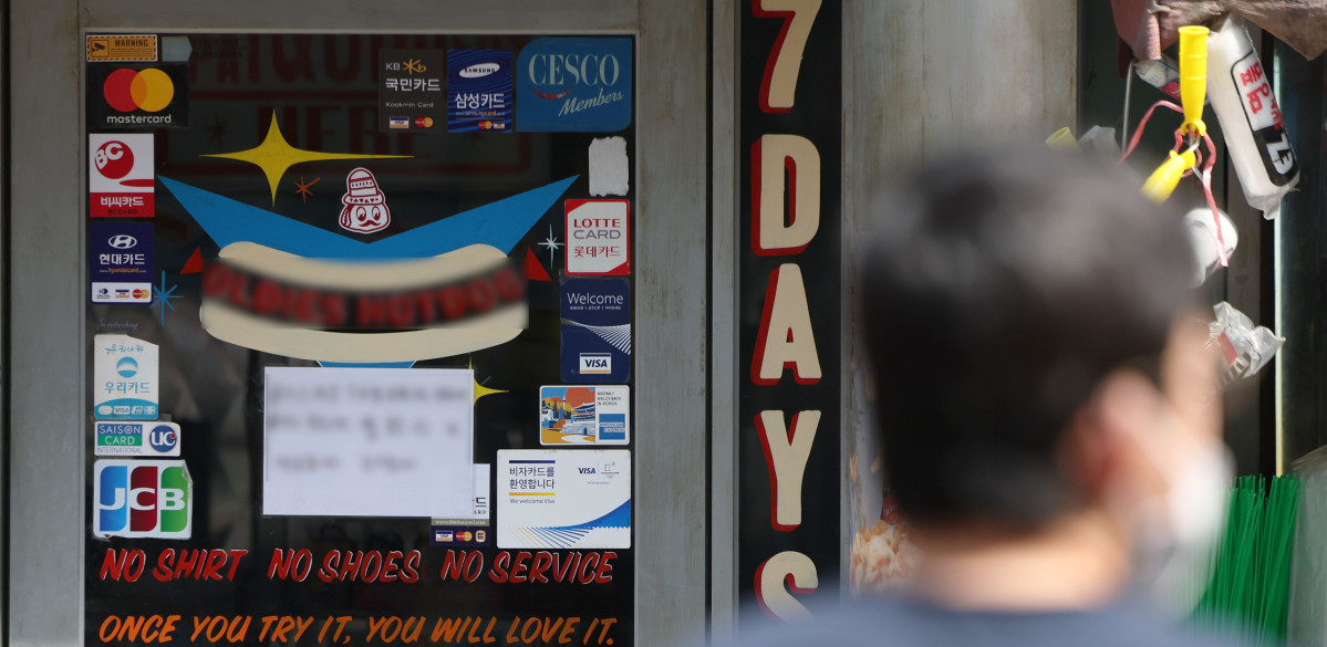 서울 소재 한 음식점 입구에 결제가능 신용카드 스티커가 붙어 있다. 2025.04.28. |