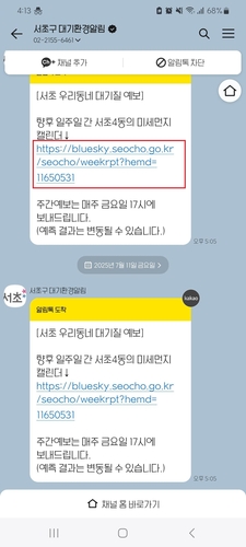 알림 서비스는 서초구 통합대기환경시스템 홈페이지에서 누구나 신청할 수 있다,