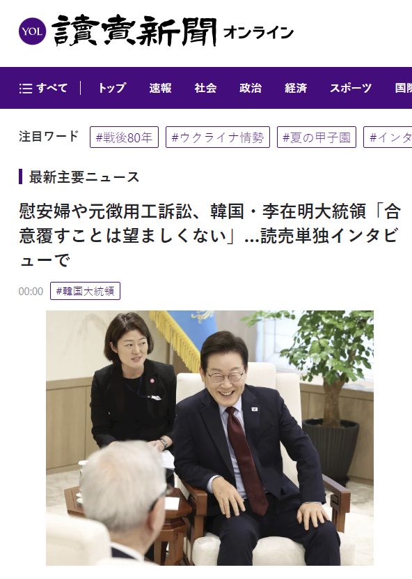 이 대통령은 21일 보도된 일본 요미우리신문과의 인터뷰에서 이같이 밝혔다. 대통령실은 지난 19일 용산 대통령실에서 진행된 인터뷰 질의응답 내용을 요약본 형태로 배포했다.