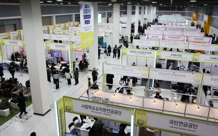 1월 17일 오후 서울 양재동 aT센터에서 열린 2024 공공기관 채용정보박람회를 찾은 취업준비생들이 부스를 둘러보고 있다. [연합] |
