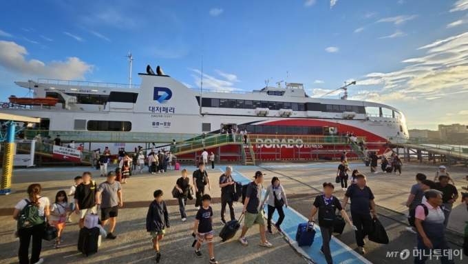 (포항=뉴스1) 최창호 기자 = 추석인 17일 오후 경북 울릉도에서 명절을 보낸 귀성객과 관광객들이 포항~울릉 정기여객선인 대저페리 엘도라도 익스프레스호를 이용, 포항여객선터미널에 도착하고 있다. (대저페리 제공) 2024.9.17/뉴스1 Copyright (C) 뉴스1. All rights reserved. 무단 전재 및 재배포, AI학습 이용 금지. /사진=(포항=뉴스1) 최창호 기자 |