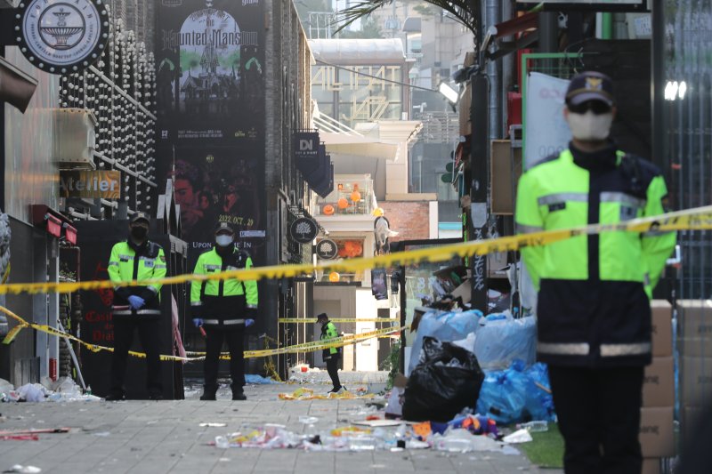 2022년 서울 용산구 이태원 압사 사고 현장 인근이 통제되고 있다. 뉴시스 |