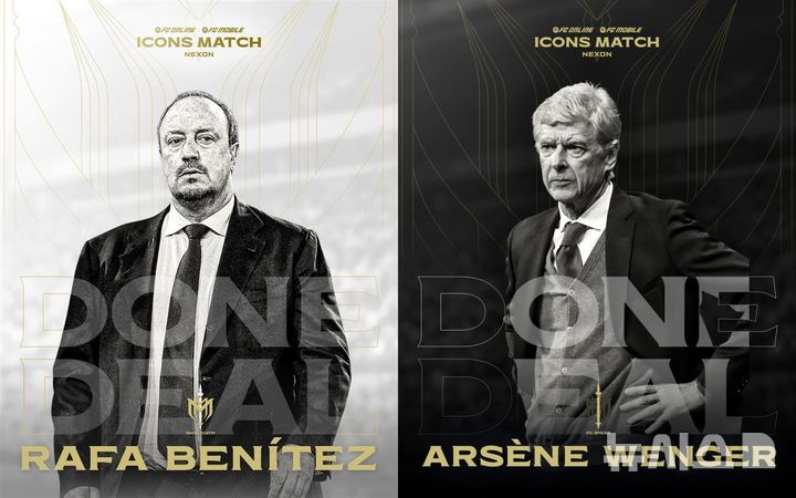 [서울=뉴시스]윤정민 기자 = 넥슨 '아이콘 매치'의 공격수 팀, 수비수 팀을 각각 이끌 감독이 공개됐다. EPL 무패 우승을 이끈 '아스널 전설' 아르센 벵거와 리버풀 감독으로서 UEFA 챔피언스리그 우승을 이끈 라파엘 베니테스다.