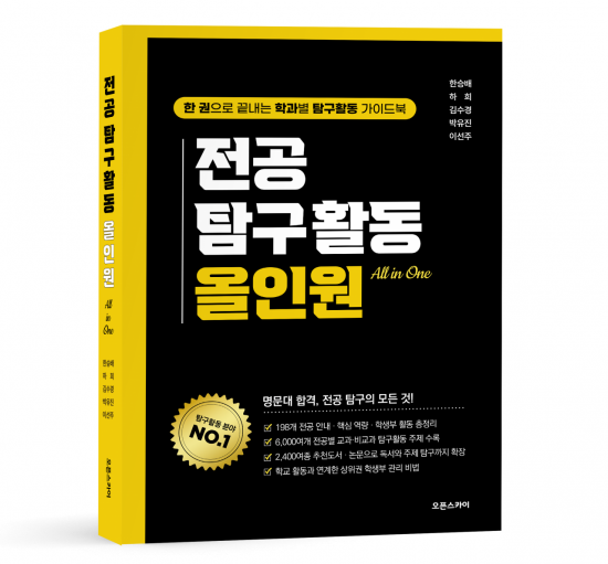 '전공 탐구활동 올인원'은 학생들이 명확한 진로 로드맵을 설계할 수 있도록 전공 탐구활동에 필요한 핵심 정보를 제공한다. 198개의 전공 소개 및 필요 역량 안내, 전공별 추천 도서와 논문, 심화 탐구를 위한 주제 추천 등을 다뤘다. 현직 중고등학교 진로 전담 교사 5명이 집필한 이번 도서는 진로 탐색과 관련 활동에 어려움을 겪는 학생들을 돕기 위해 개발됐다.