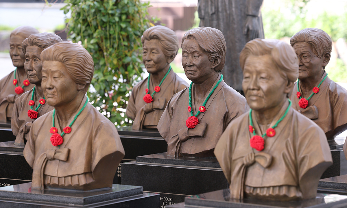 21일 경기 광주시 퇴촌면 나눔의집에 위안부 피해자 할머니들의 흉상이 세워져 있는 모습. 뉴스1 |