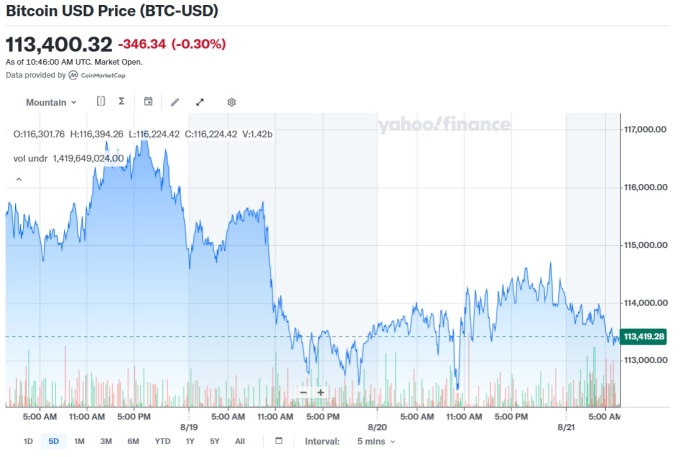 비트코인 가격 차트, 자료=야후 파이낸스, 2025.08.21 koinwon@newspim.com |