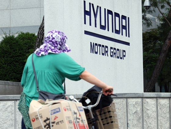 서울 서초구 양재동 현대자동차그룹 본사 앞으로 자전거를 가진 한 시민이 지나고 있다. [뉴스1] |