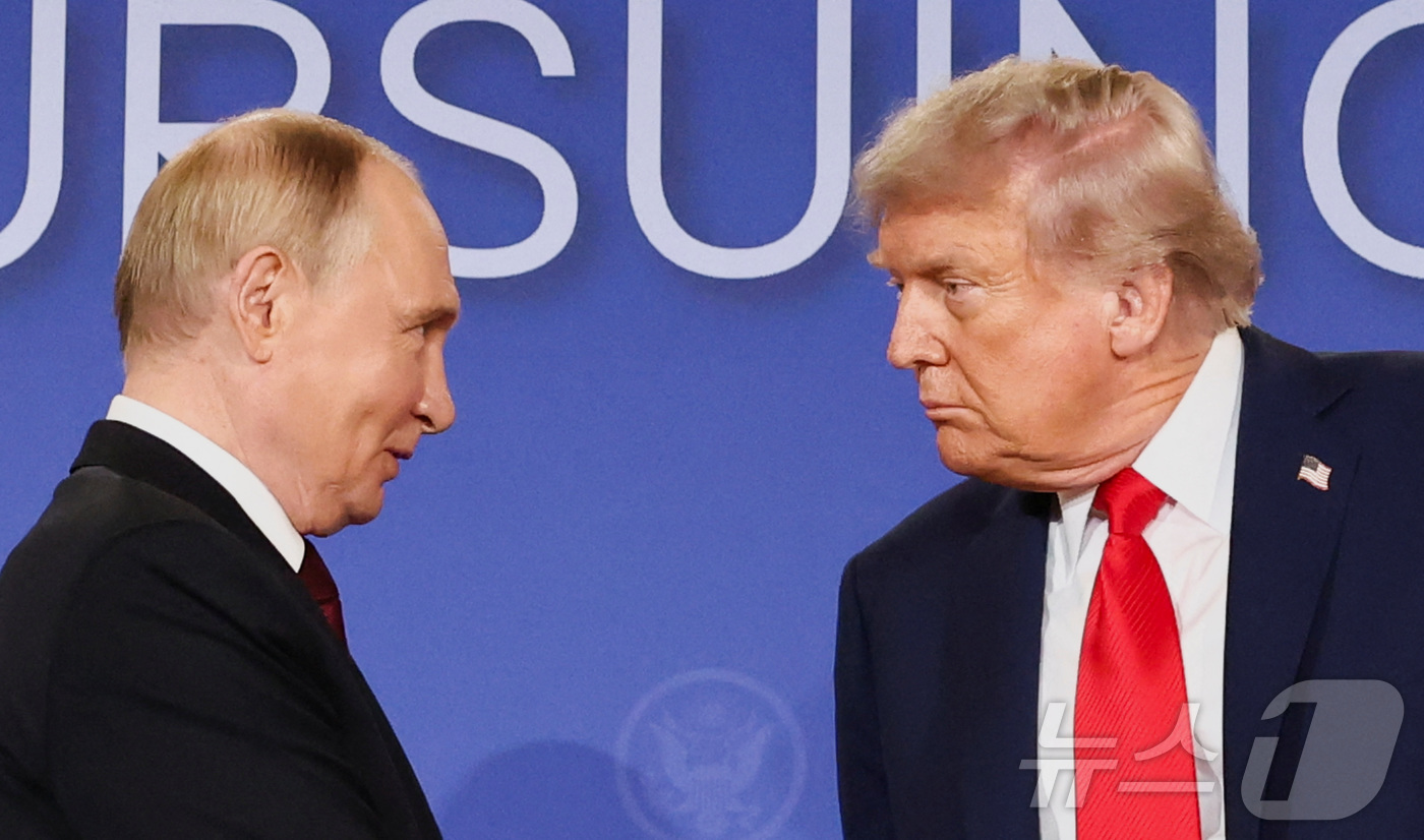 도널드 트럼프 미국 대통령과 블라디미르 푸틴 러시아 대통령이 15일(현지시간) 알래스카 앵커리지의 엘멘도르프-리처드슨 합동 기지에서 열린 우크라이나 전쟁 종식 협상을 위한 정상회담 공동 기자회견에서 서로 마주보고 있다. 2025.8.15 ⓒ 로이터=뉴스1 |