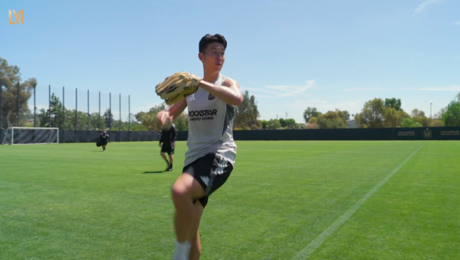 축구장 밖에서도 영향력을 발휘하고 있는 손흥민. 그는 훈련장에서 축구화를 신은 채 야구 글러브를 손에 낀 낯선 모습이 포착됐다. 숨을 크게 내쉬고 와인드업 자세를 따라 하며 약 일주일 앞으로 다가온 시구를 연습한 것.