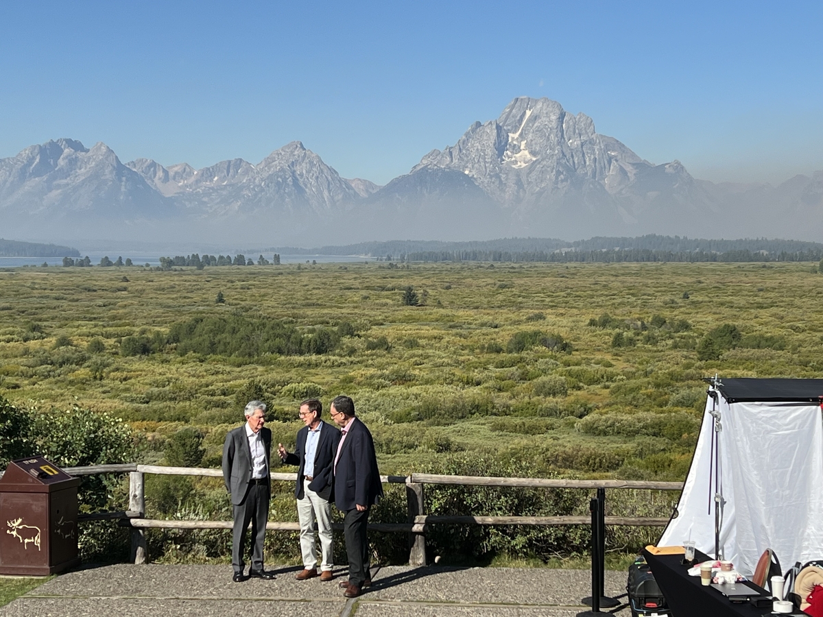 제롬 파월 미국 연방준비제도 의장(왼쪽)이 지난해 8월 미국 와이오밍주 잭슨홀에서 열린 연례 경제정책 심포지엄에서 앤드루 베일리 영란은행 총재, 티프 매클렘 캐나다 중앙은행 총재와 이야기를 나누고 있다. 캔자스시티 연방준비은행 SNS 갈무리 |