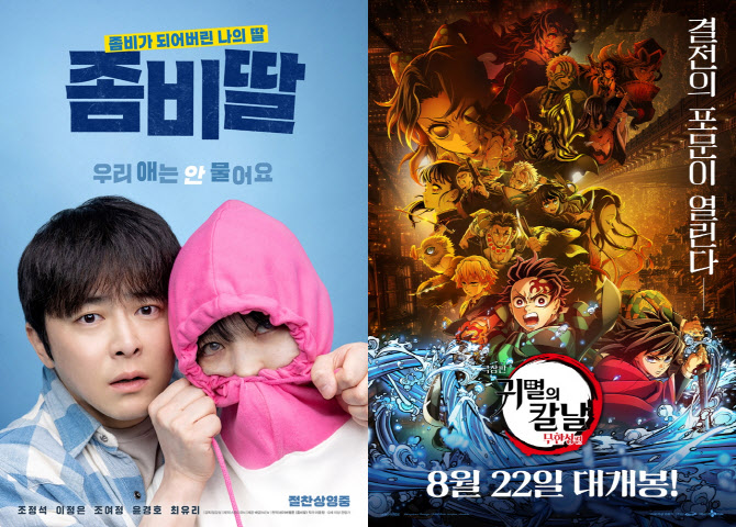 영화 ‘좀비딸’(왼쪽)과 ‘귀멸의 칼날:무한성편’ 포스터 |